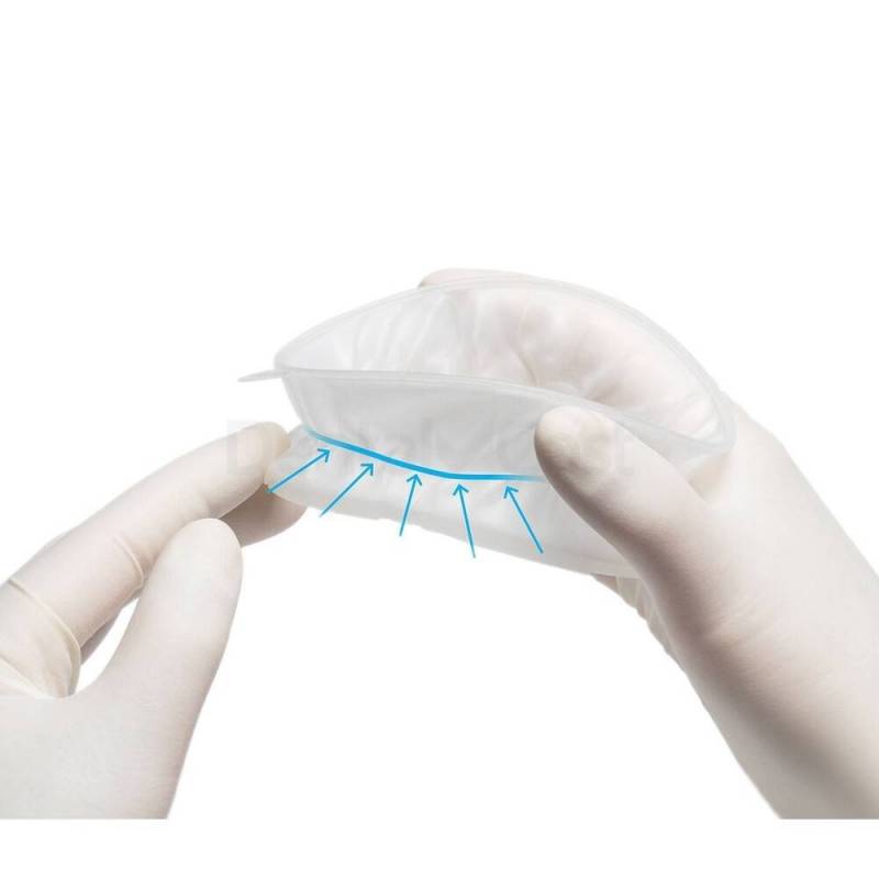Material blando y flexible con cavidades para alojar el frenillo labial superior e inferior.