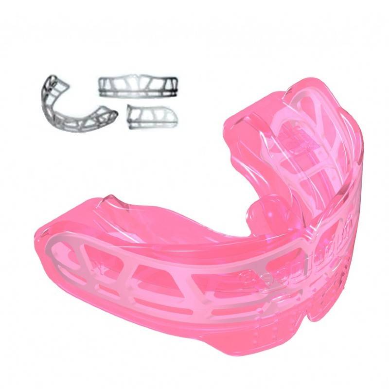 De color rosa, el aparato dental K2 Myobrace for Kids está disponible en tres tamaños, pequeño, mediano y grande.