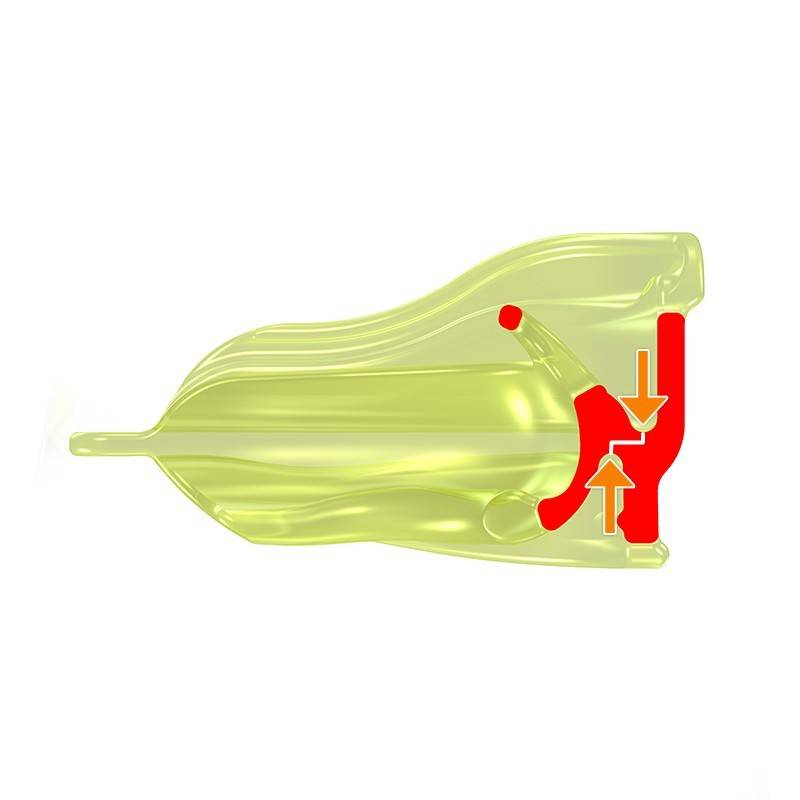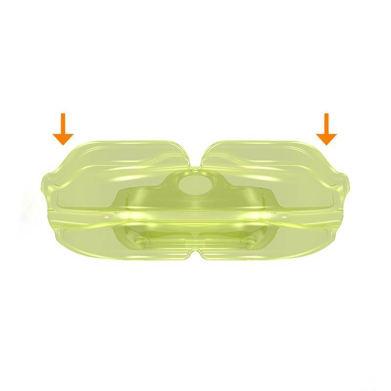Presenta una compensación de 3 mm entre la parte superior e inferior de la parte anterior de la arcada que ayuda a corregir una mordida dental en los dientes anteriores permanentes, corrección dental de la clase III.
