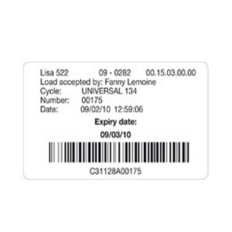 Las etiquetas del código de barras LisaSafe contienen toda la información para relacionar los productos esterilizados con el ciclo de esterilización y el historial del paciente, es decir, incluye: