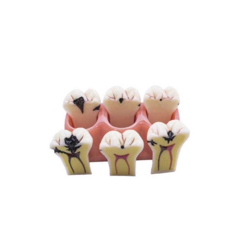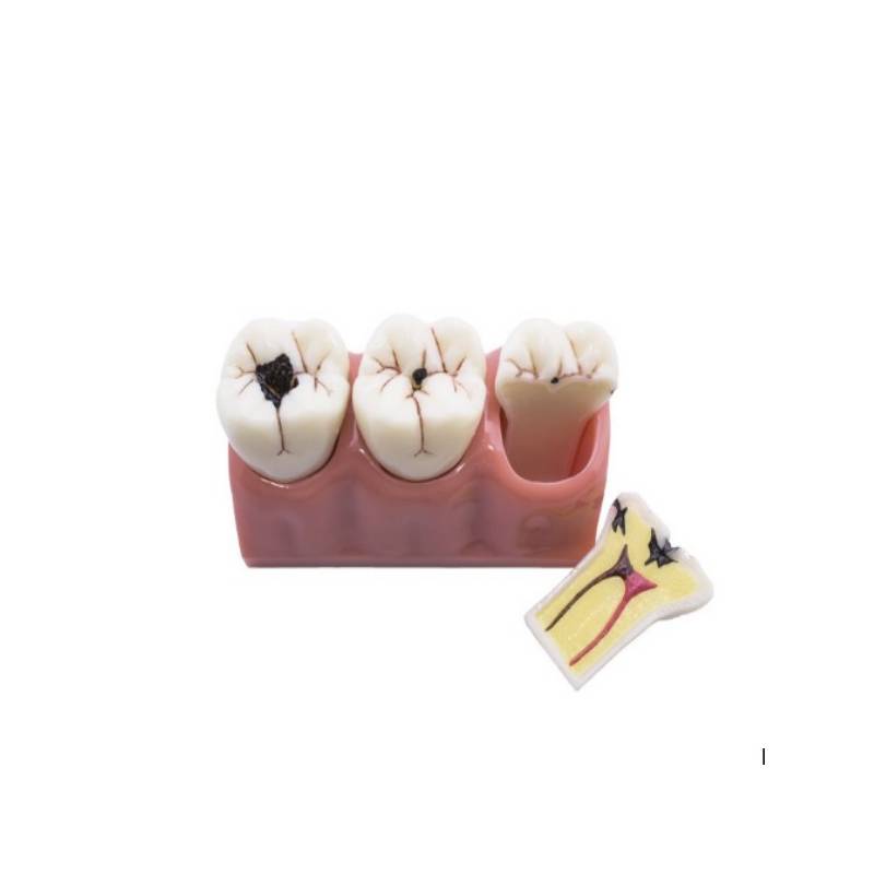 - Modelo compuesto por 3 molares en diferentes estados de infección de caries.