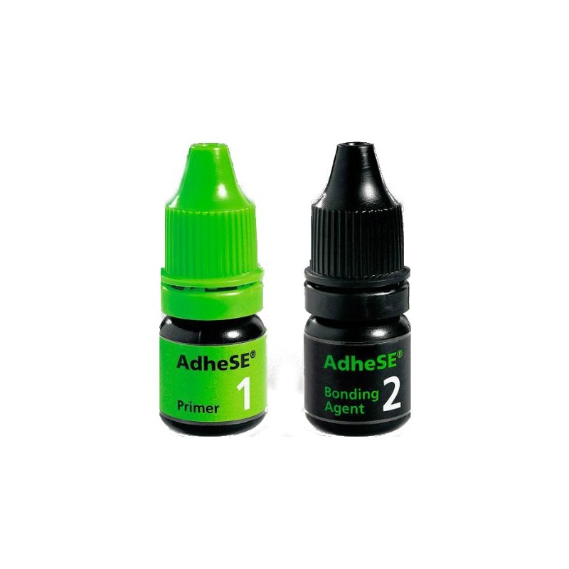 AdheSE de Vivadent es un sistema adhesivo a esmalte dentinario autograbante, fotopolimerizable de dos componentes. Indicado para restauraciones directas de composite en cavidades clase I-V. También indicado en las restauraciones de materiales autopolimerizables como materiales de muñones, después de la fotopolimerización de AdheSE Bonding.
