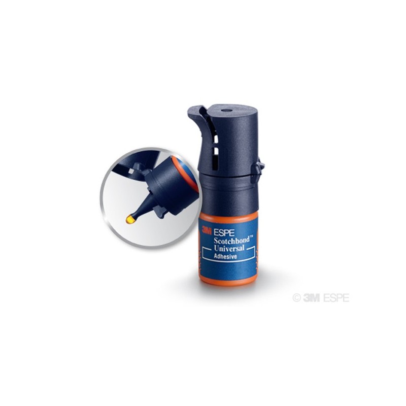 El adhesivo Scotchbond™ Universal de 3M, es un gel grabador de consistencia y color mejorados. Proporciona la máxima resistencia y velocidad, tiempo de aplicación de 35 segundos. Es versatilidad ya que puedes elegir la técnica más apropiada en cada uso, ya sea autograbante, grabado ácido total o grabado selectivo del esmalte.