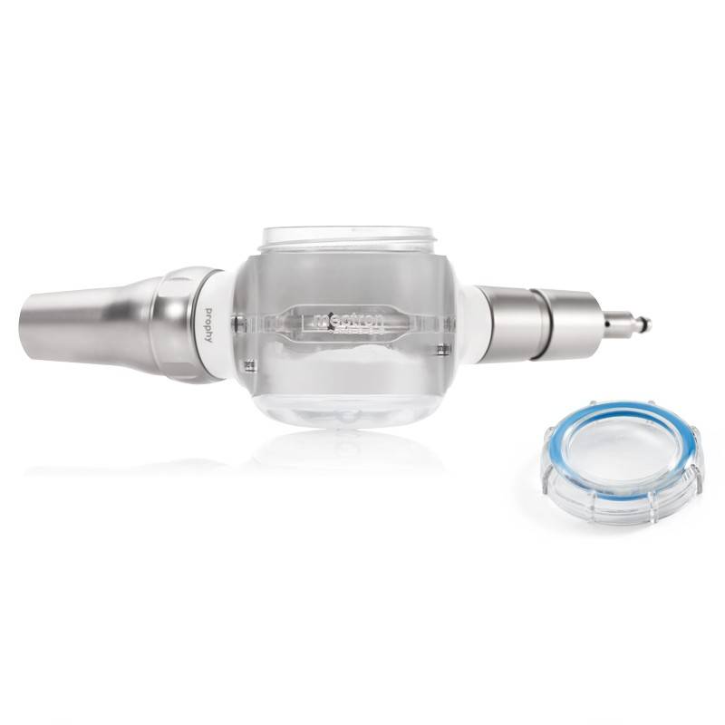 Este aeropulidor flexible permite seleccionar el polvo apropiado en cada momento y cambiar con facilidad de supra a subgingival con un sencillo girar de su anillo selector entre prophy y perio.