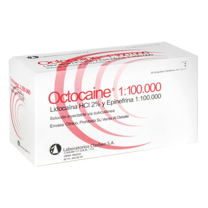 El envase de anestesia Octocaine 1:100.000 contiene 50 cartuchos.