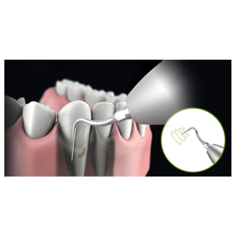 - 6 funciones en 1 sólo aparato: limpieza ultrasónica, terapia periodontal, irrigación de conductos radiculares, pulido supra y subgingival con aire, mantenimiento de implantes.