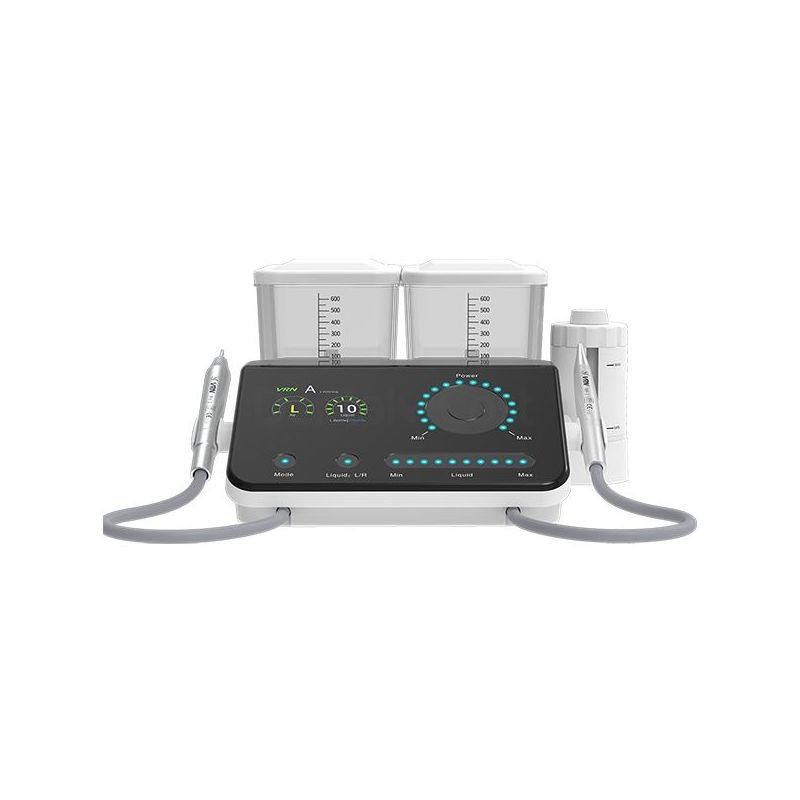 La unidad de ultrasonidos Q6 de VRN by Mestra es un limpiador piezoeléctrico multifuncional con sistema inteligente de pulido por aire que ofrece 6 funciones en 1 sólo aparato: