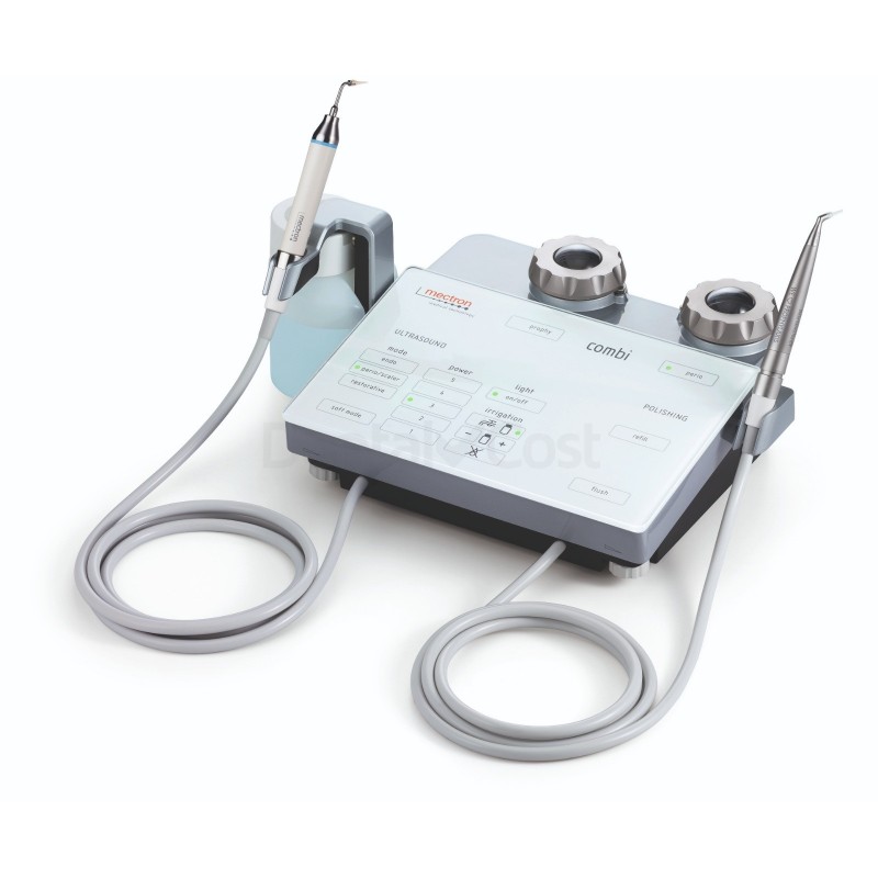 Combi Touch Perio de Mectron es un dispositivo de profilaxis multifuncional, aeropulidor y ultrasonidos, todo en uno. Permite realizar completamente un tratamiento profiláctico removiendo el cálculo supragingival y gingival de manera delicada, manchas y biofilm. Además, de realizar limpiezas de la superficie implantológica.