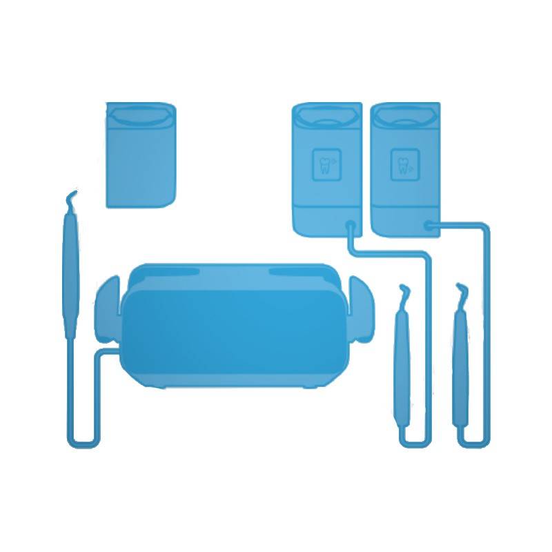 Gracias a que el conjunto de depósitos y pieza de mano extraíble son independientes, este dispositivo de limpieza bucal permite ir alternando, sin problemas, entre la aplicación supragingival y sugingival, facilitando el mantenimiento y manejo de la unidad.