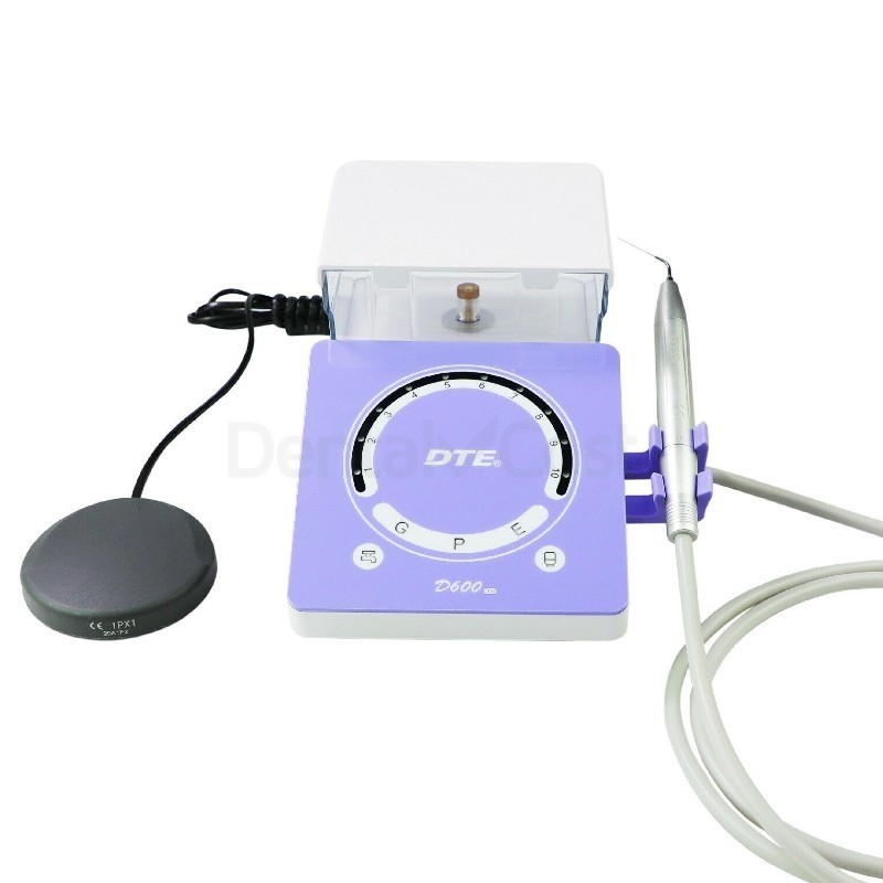 El D600 LED de DTE es un aparato de ultrasonidos de sobremesa con depósito de agua y luz LED, que integra limpieza supragingival y subgingival, reconstrucción de daños, mantenimiento del implante y terapia de conducto radicular, todo en uno.