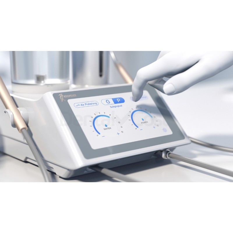 El ultrasonidos aeropulidor Woodpecker PT-A es un aparato sencillo y atractivo con una unidad de sobremesa compacta con pantalla LCD táctil grande de 7" a prueba de líquidos y salpicaduras. De operatividad intuitiva, permite su uso incluso con guantes o film protector. La selección de funciones y la indicación del estado de trabajo son sencillas y claras.