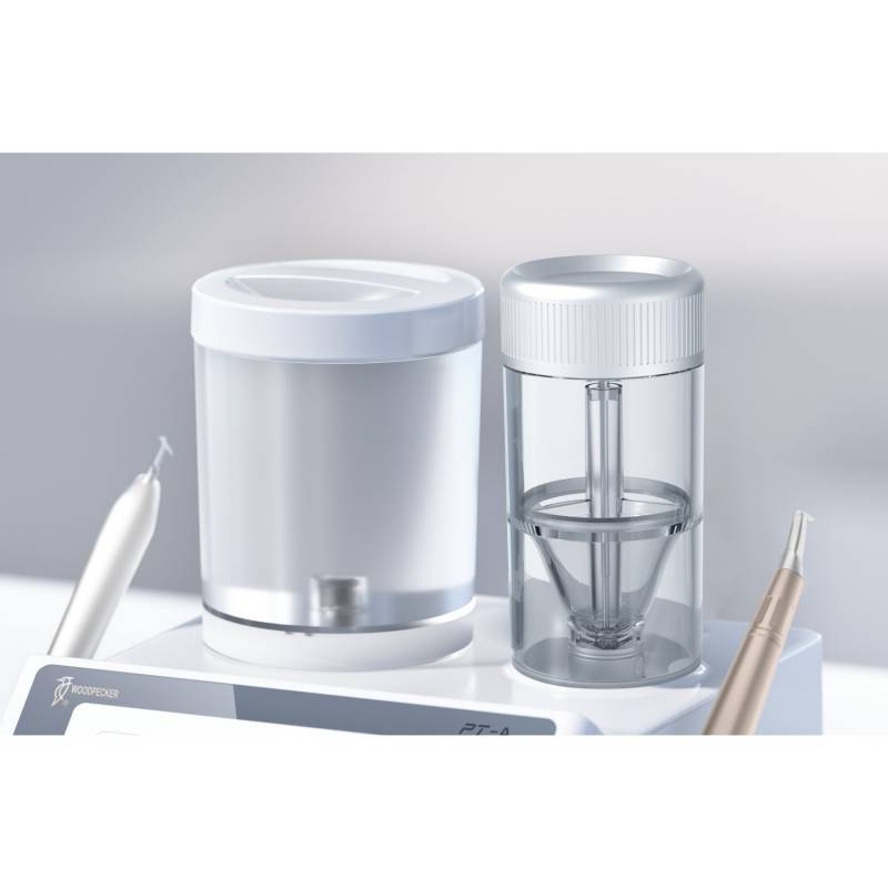 El limpiador dental PT-A está equipado con 2 depósitos de 600ml y 1400ml, intercambiables, hechos en materiales anticorrosivos.