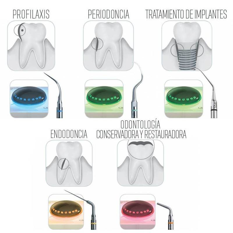 - Responde a todas las necesidades clínicas: profilaxis, periodoncia, tratamiento de implantes, endodoncia, cirugía endodóncica, odontología conservadora y restauradora.