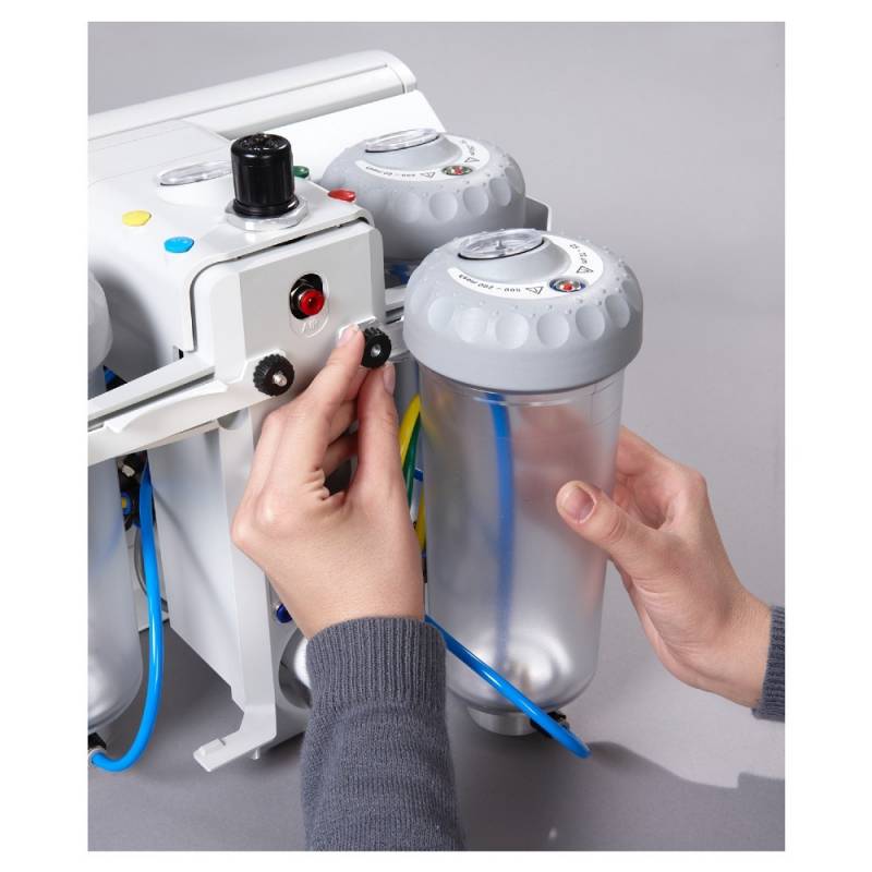 La ampliación de la cantidad de depósitos es sencilla y sin herramientas, por medio de racores rápidos y un sistema de guía por colores.