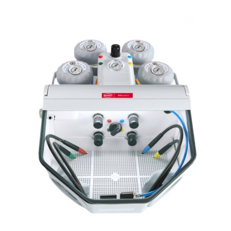 La arenadora de precisión Basic Quattro IS de Renfert es una cámara de chorreado equipado con el sistema especial IS= inmediate stop que representa el símbolo para la tecnología de parada rápida integrada.