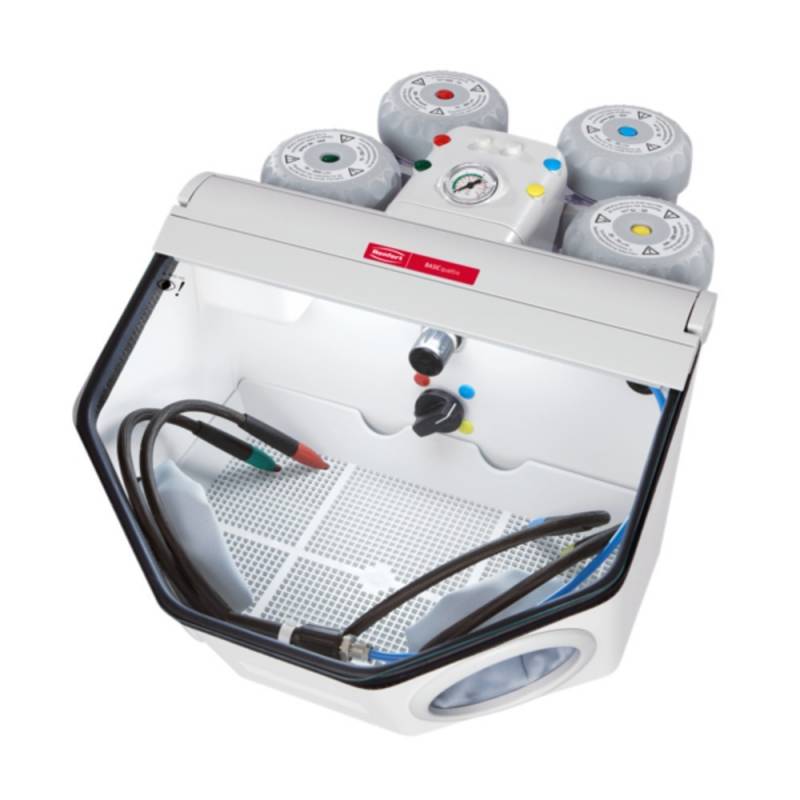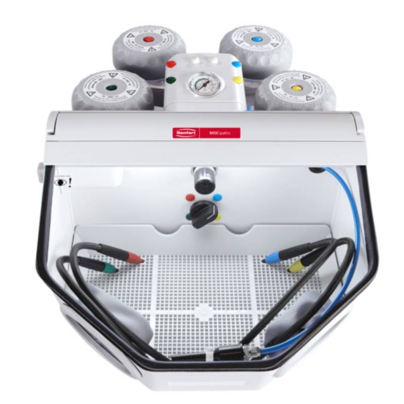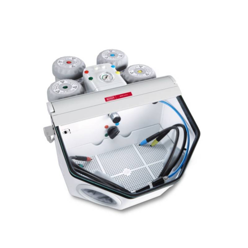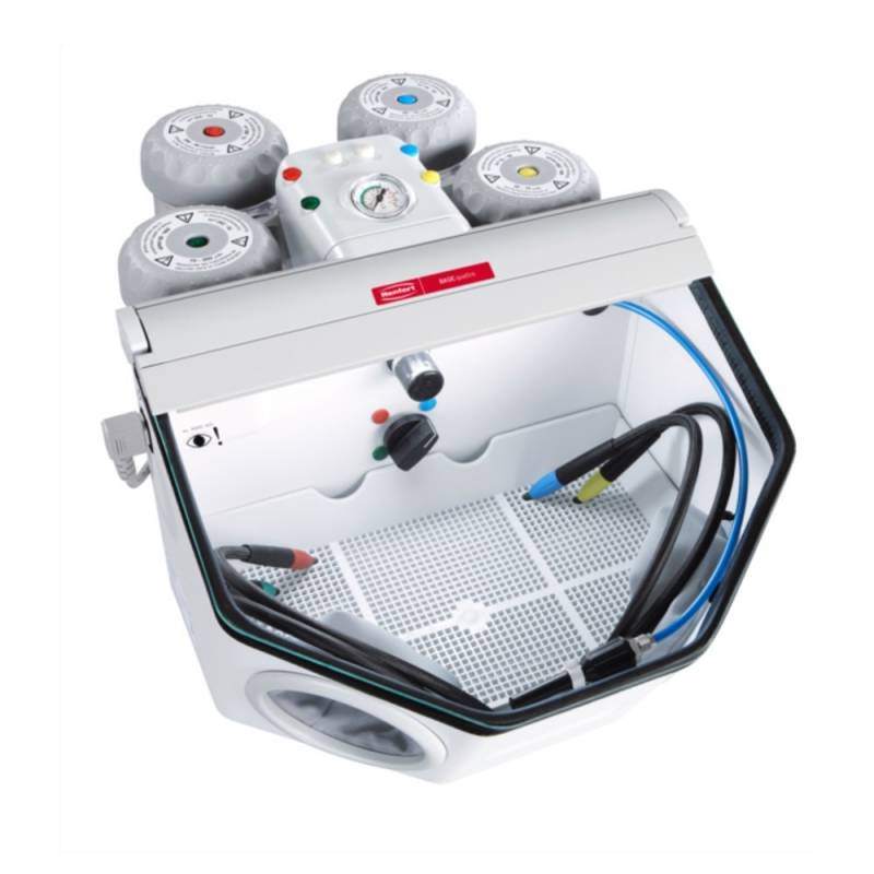 Basic Quattro de Renfert es una arenadora con una gran libertad de movimientos en la cabina de arenado de 20 Litros.