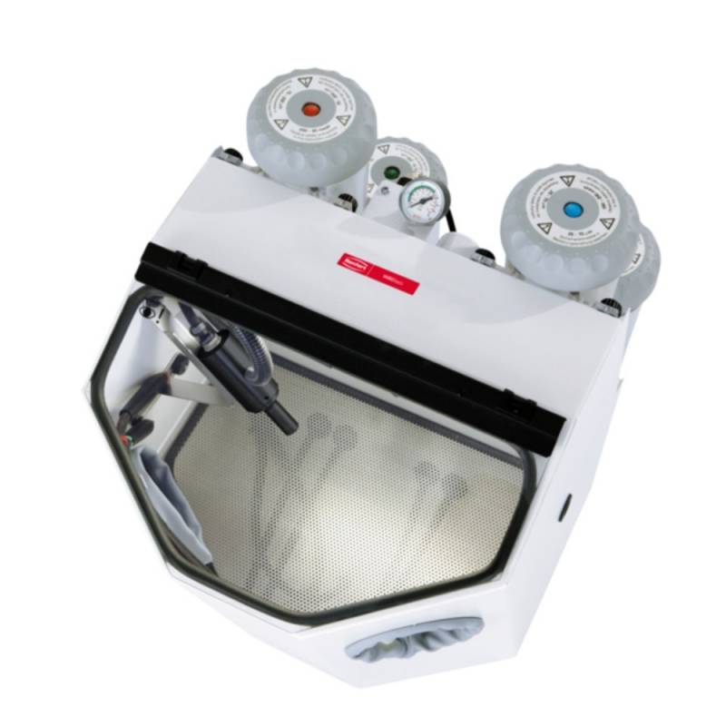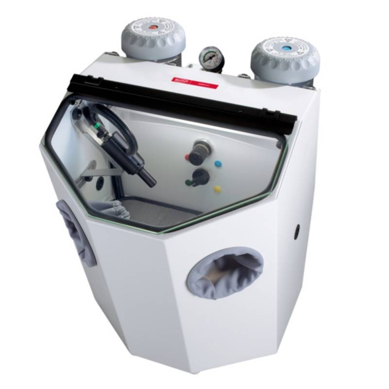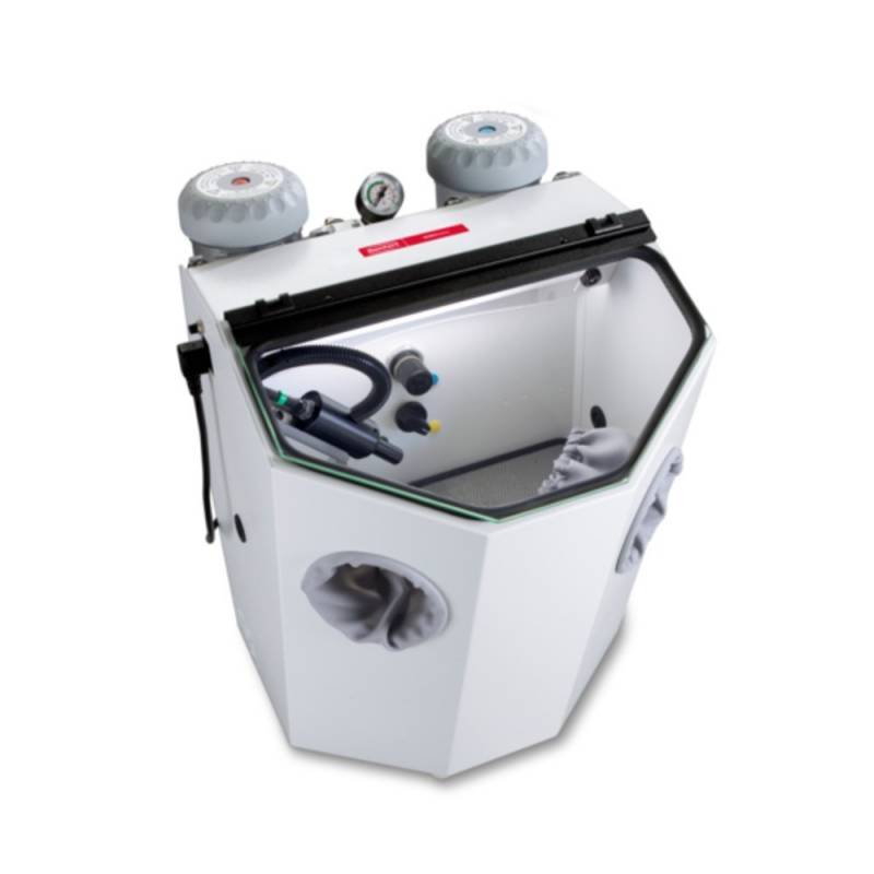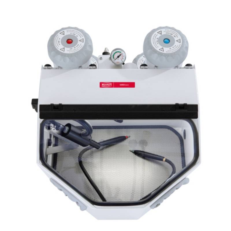 La arenadora Renfert Vario Basic de reciclaje es la combinación compacta entre aparato de chorreado giratorio y aparato de chorreado fino.