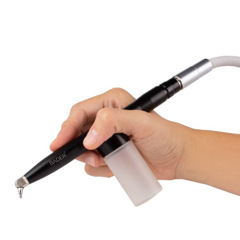 La chorreadora 360 Plus de Bader es una microarenadora con acomplamiento 360 plus que ofrece una gran facilidad de conexión a la unidad dental.