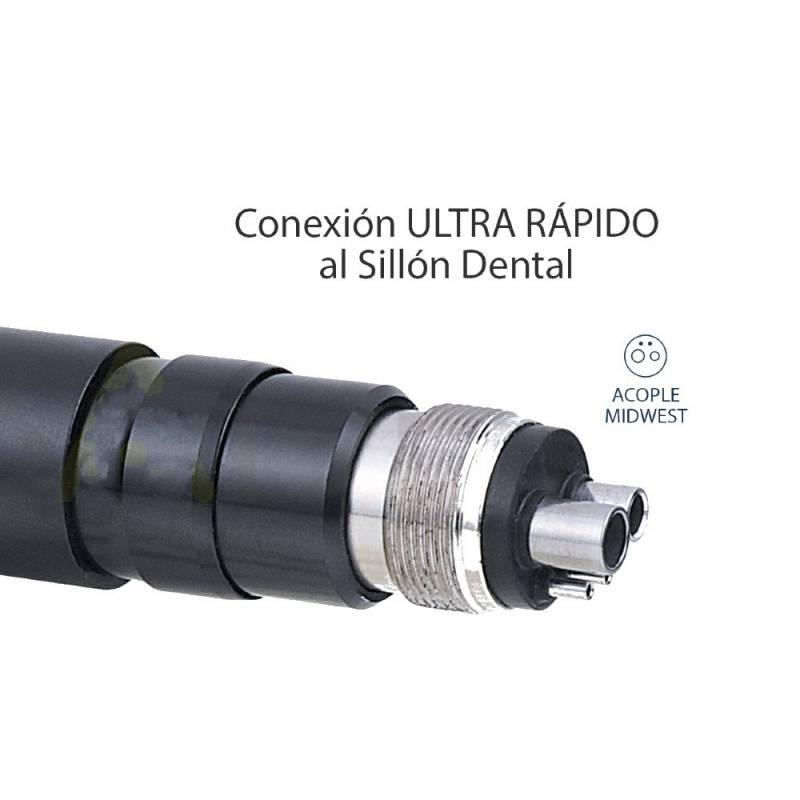 Incluye acople/conexión Midwest para sillones dentales y cuya punta gira 360 grados.