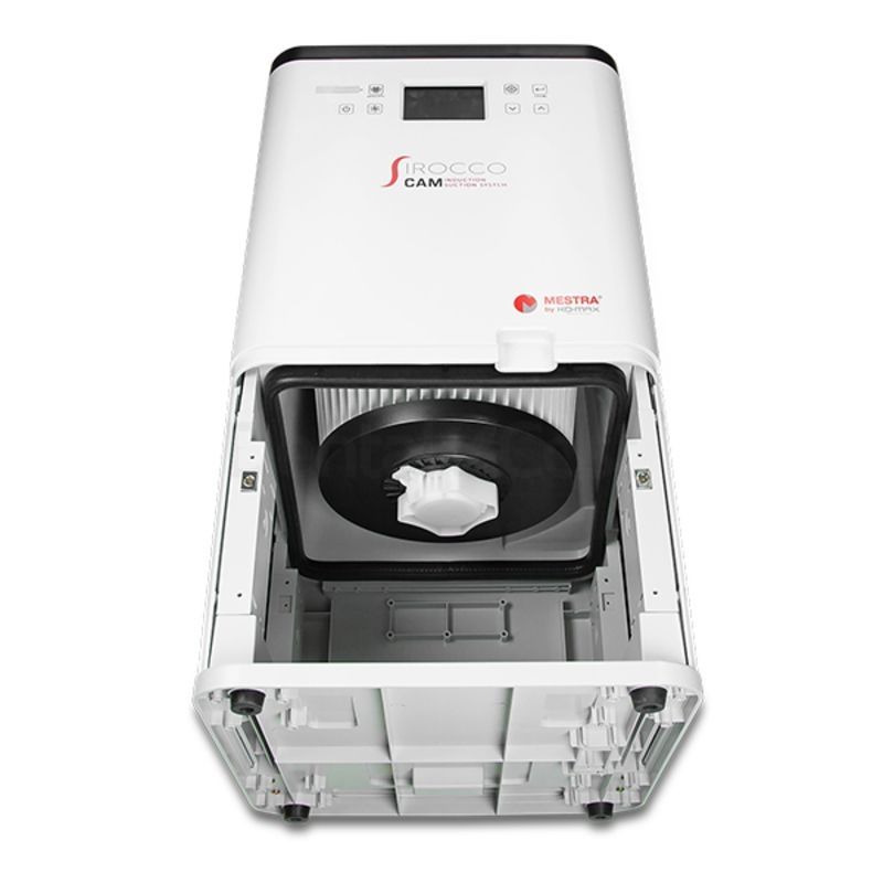 La aspiración de Mestra by KO-Max Sirocco CAM es un sistema de aspiración sin bolsa, y es la solución perfecta para los laboratorios dentales donde las fresadoras CAD-CAM trabajan durante largas jornadas.