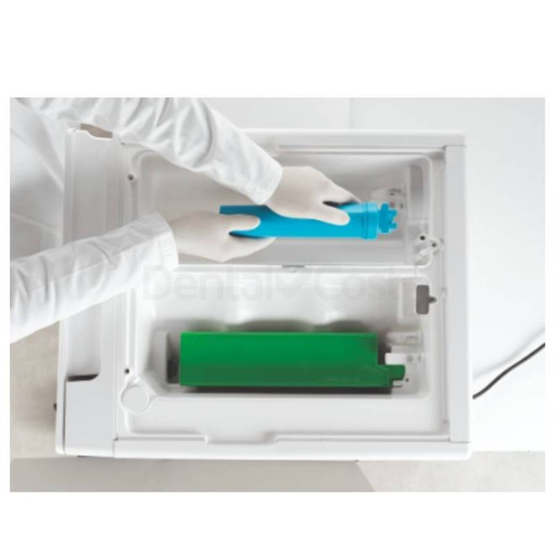 Con un consumo de aproximadamente 100ml/ciclo reduce los costes, elimina el derroche y aumenta notablemente la eficacia de las actuales clínicas dentales.