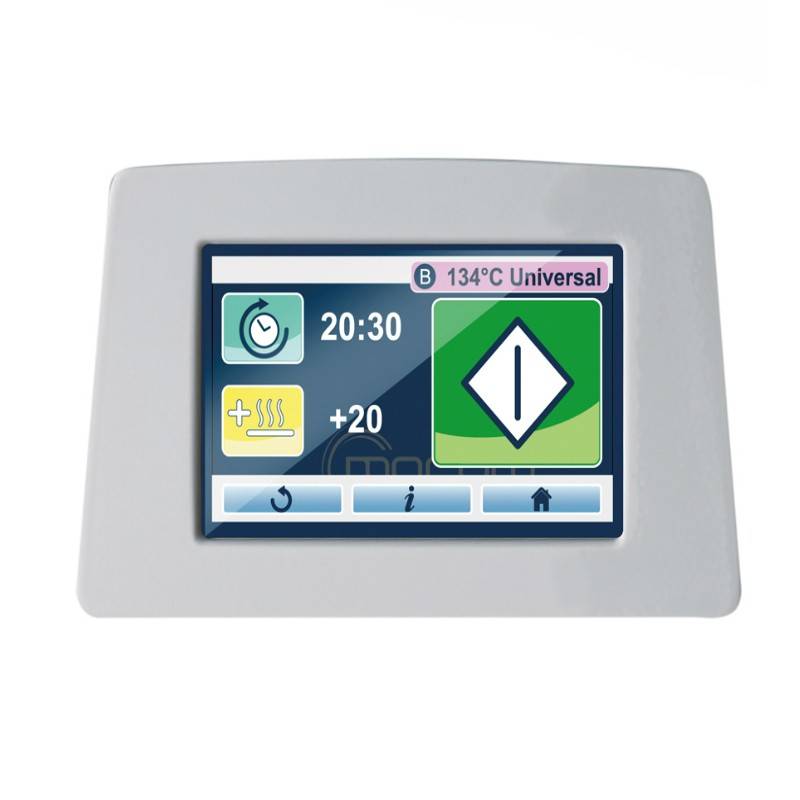 Su nueva pantalla táctil a color presenta una interfaz sencilla e intuitiva, con iconos claramente reconocibles, que representan el estado del autoclave y sus funciones. De esta forma, la selección y ejecución de los ciclos no presenta complicaciones y es más rápida.