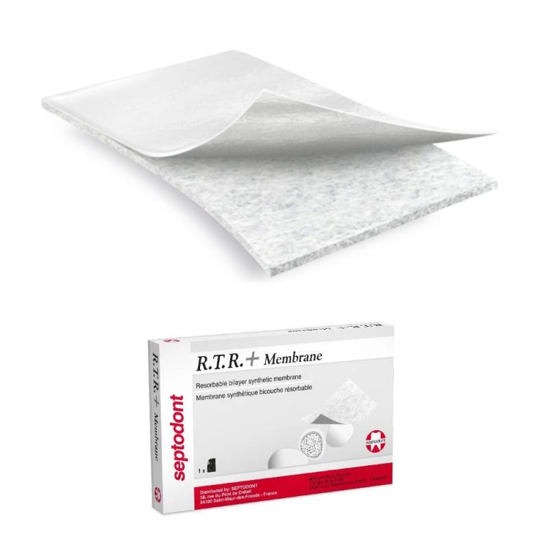 R.T.R.+ Membrane de Septodont es una membrana dental para la regeneración ósea correcta formada por polímeros bio-reabsorbibles sintetizados a partir de ácido poliláctico y poliglicólico.