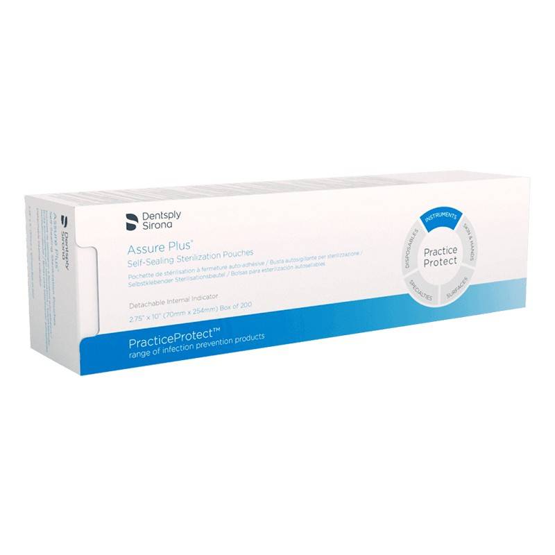 La caja de bolsas autosellantes Assure Plus de Dentsply contiene 200 unidades.