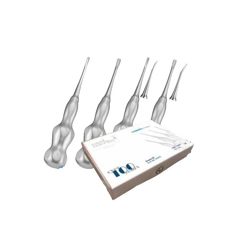 - Set botadores para la elevación, remoción y extracción de dientes, fragmentos y raíces.