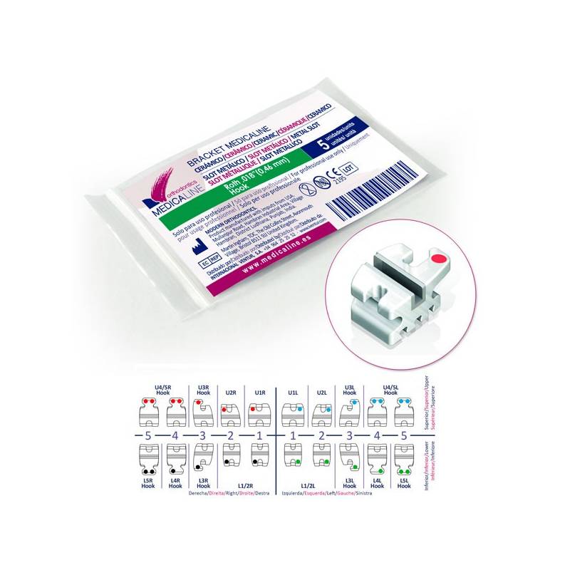 Brackets ML Cerámicos con Slot Metálico Roth .018 5u de Medicaline.