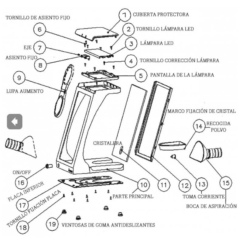- Con luz LED y lupa de 2x a 10x.