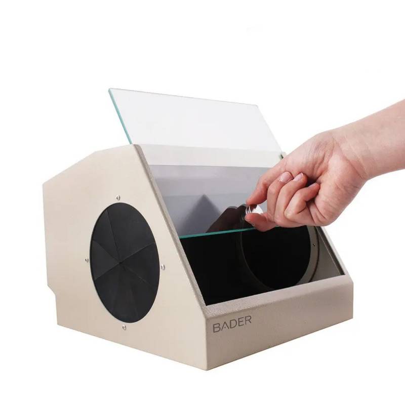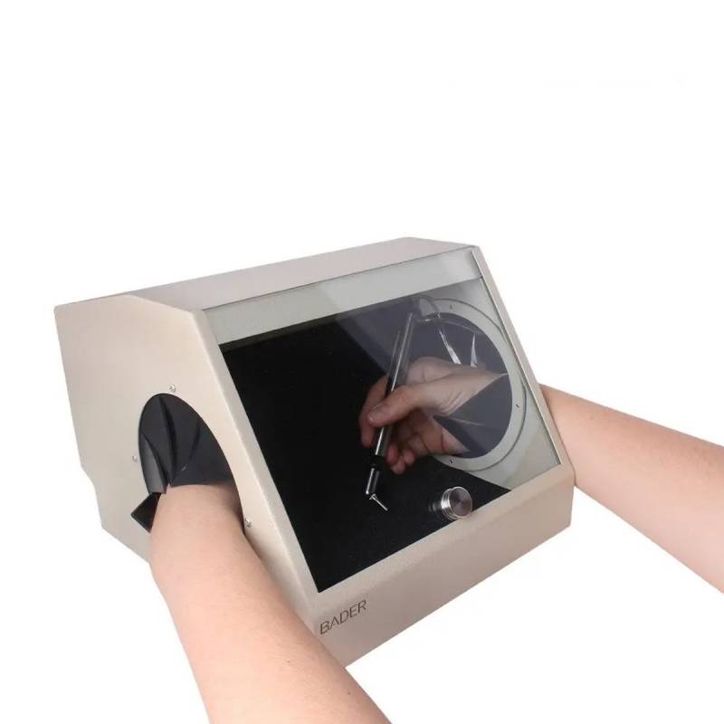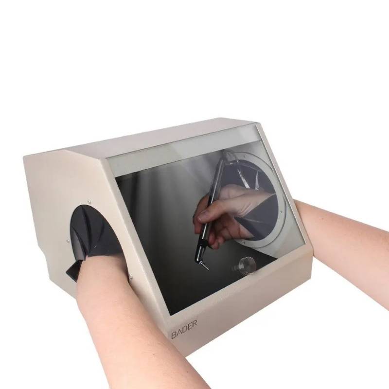 La cámara de trabajo de Bader está diseñada para facilitar tu trabajo con equipos de abrasión como puede ser un micromotor.