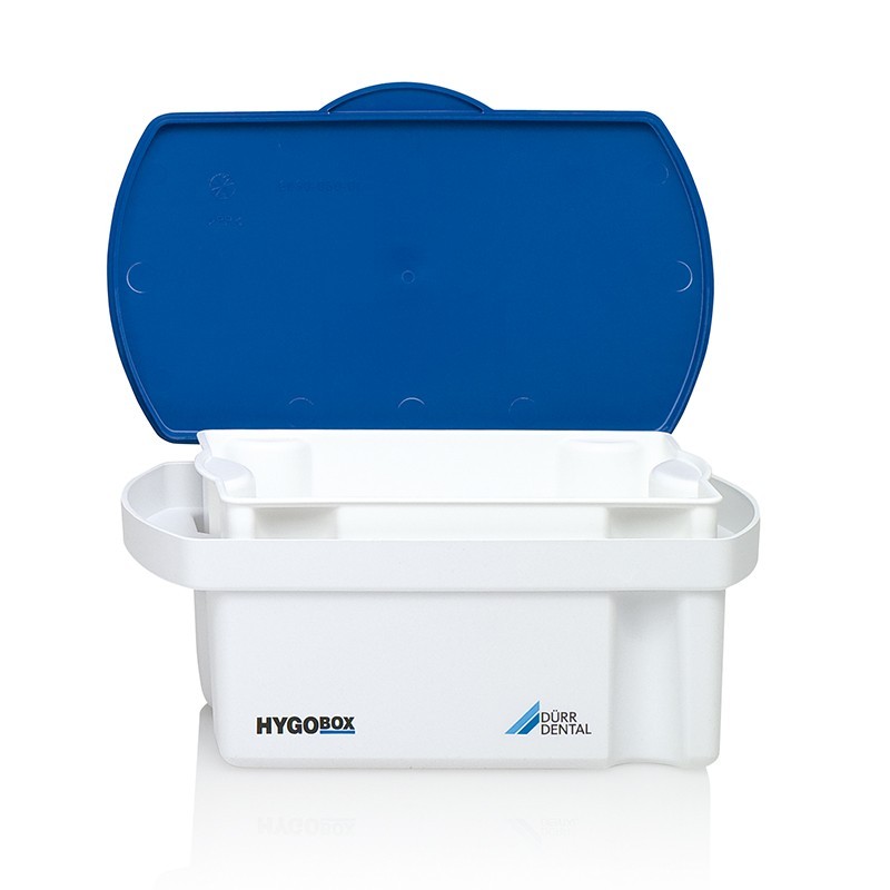 Hygobox de Durr es una caja de transporte robusta y resistente, ideal para la desinfección manual.