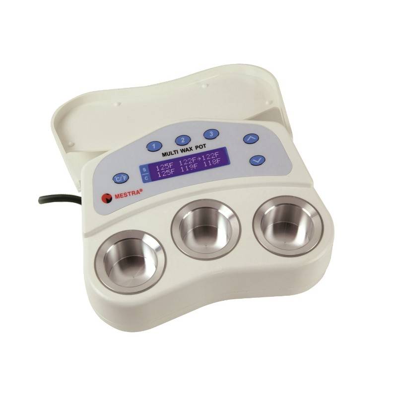 Este calentador digital de cera Mestra cuenta con tres recipientes donde se puede calentar tres tipos de cera, y además, también cuenta con regulación de temperaturas independiente en cada cuba.