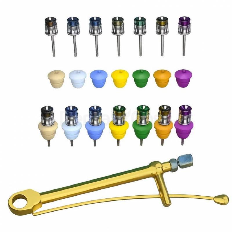 El kit está fabricado en acero especial médico importado, con tratamiento de nitruro de titanio grado médico, resistente y duradero.