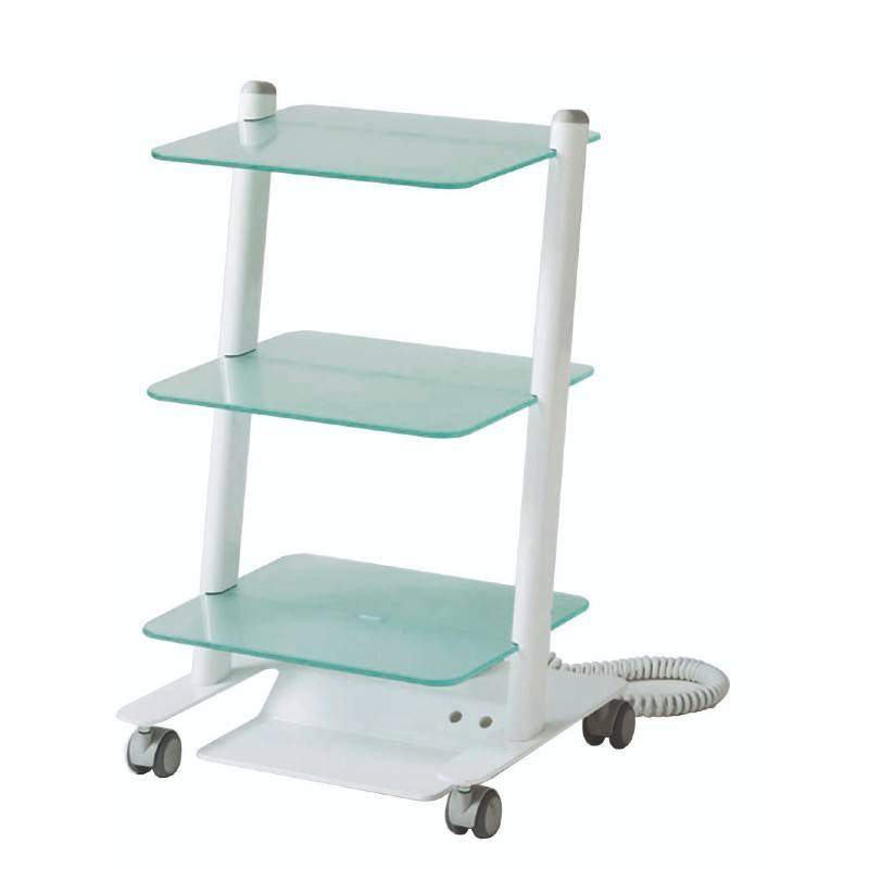 - Carrito móvil auxiliar para clínica con 3 estantes de cristal.