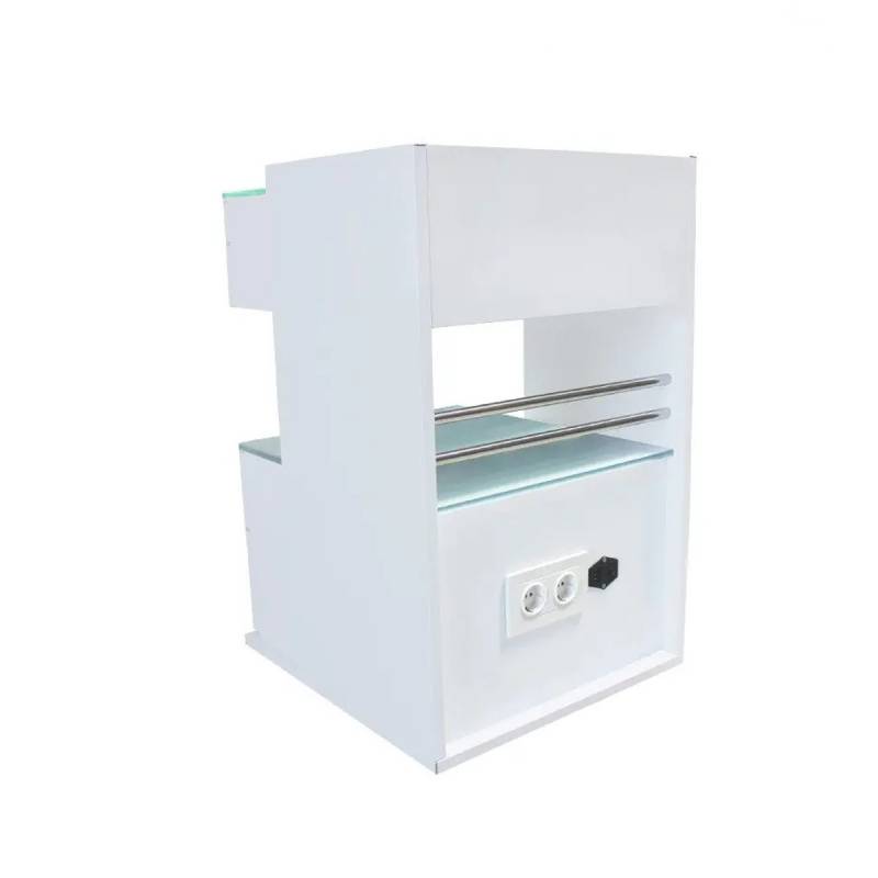 Su doble encimera con superficie de cristal blanco hielo antideslizante evita que los instrumentos depositados en ella se deslicen, favoreciendo el trabajo del odontólogo que no deberá preocuparse de caídas sorpresa durante los procedimientos.