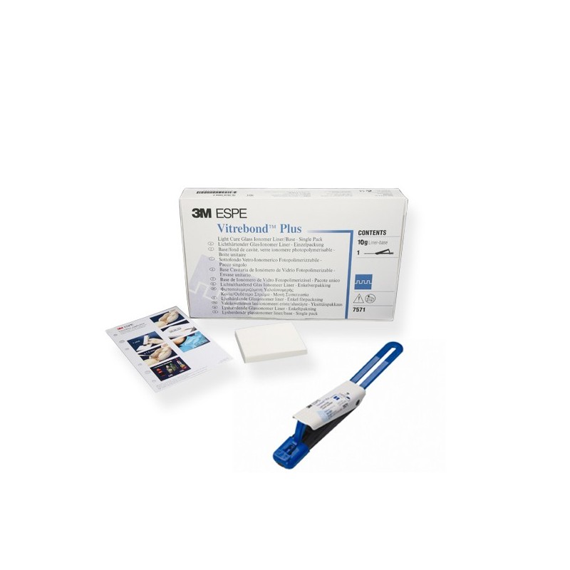 - Base cavitaria Vitrebond de ionómero de vidrio con un nuevo formato en pistola de mezcla pasta-pasta para una manipulación más rápida.
