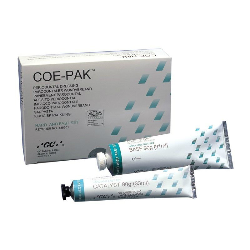 Coe-Pak de GC es un cemento quirúrgico indicado para la realización de revestimientos periodontales, apósitos, tapar suturas o para estabilizar dientes sueltos. Posee una dureza elástica que no permite que se quiebre y está probado en la protección de trabajos quirúrgicos.