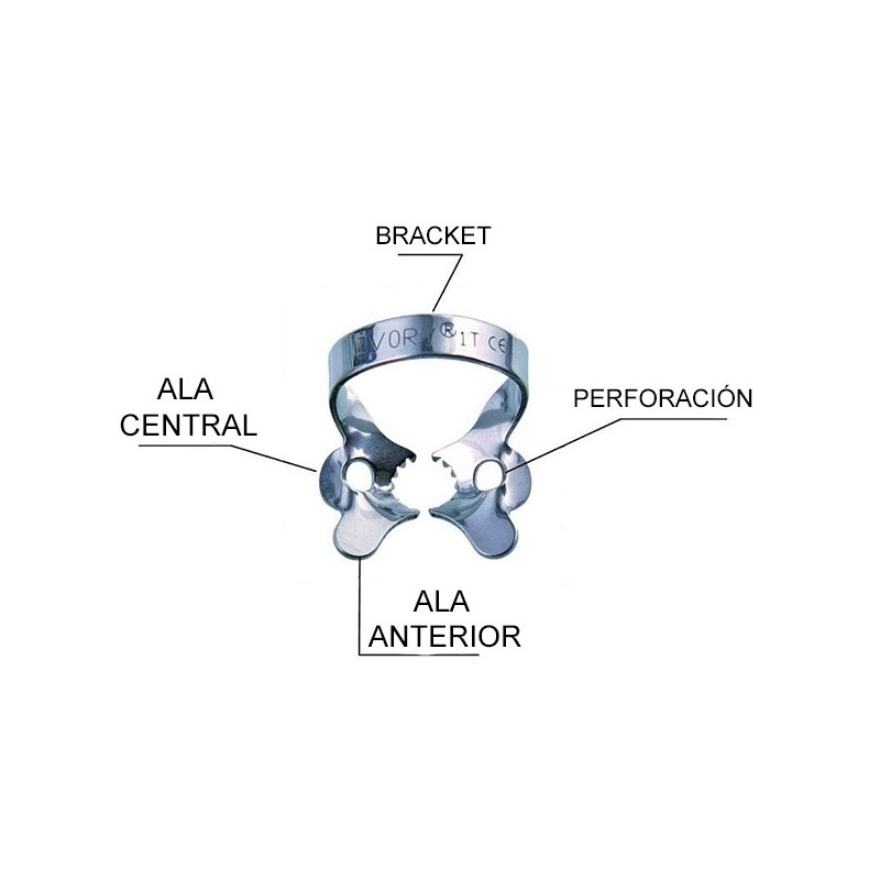 - Clamp con ala para endodoncia en 23 tamaños a elegir.