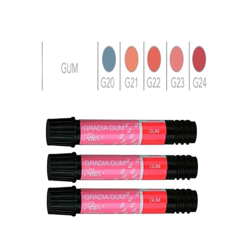 El envase de Gradia Gum C&B de GC contiene 1 jeringa de 2,9 ml, tono a elegir entre los disponibles.