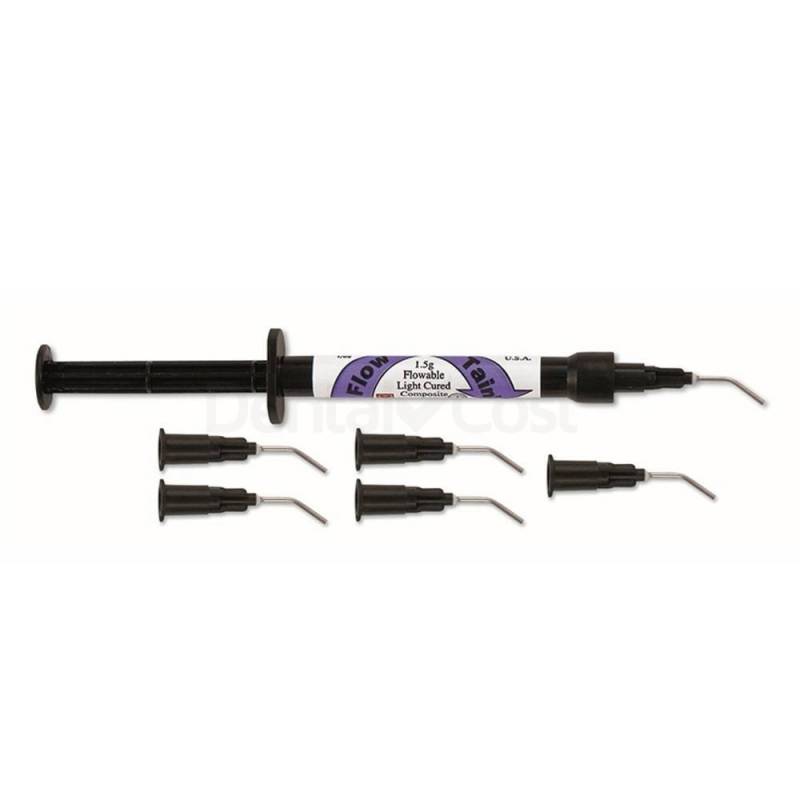 El envase de Flow Tain Composite fluido fotopolimerizable de Reliance Orthodontic contiene: 1 jeringa 1,5 con puntas.