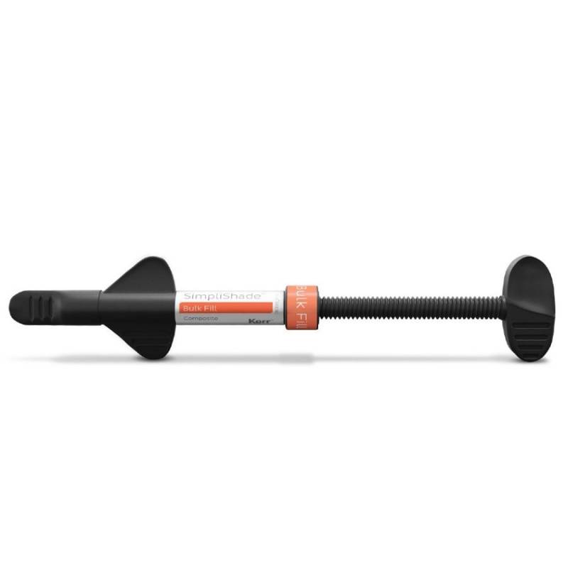 Simplishade Bulk Fill Composite universal de Kerr se presenta en jeringa de 4 g.