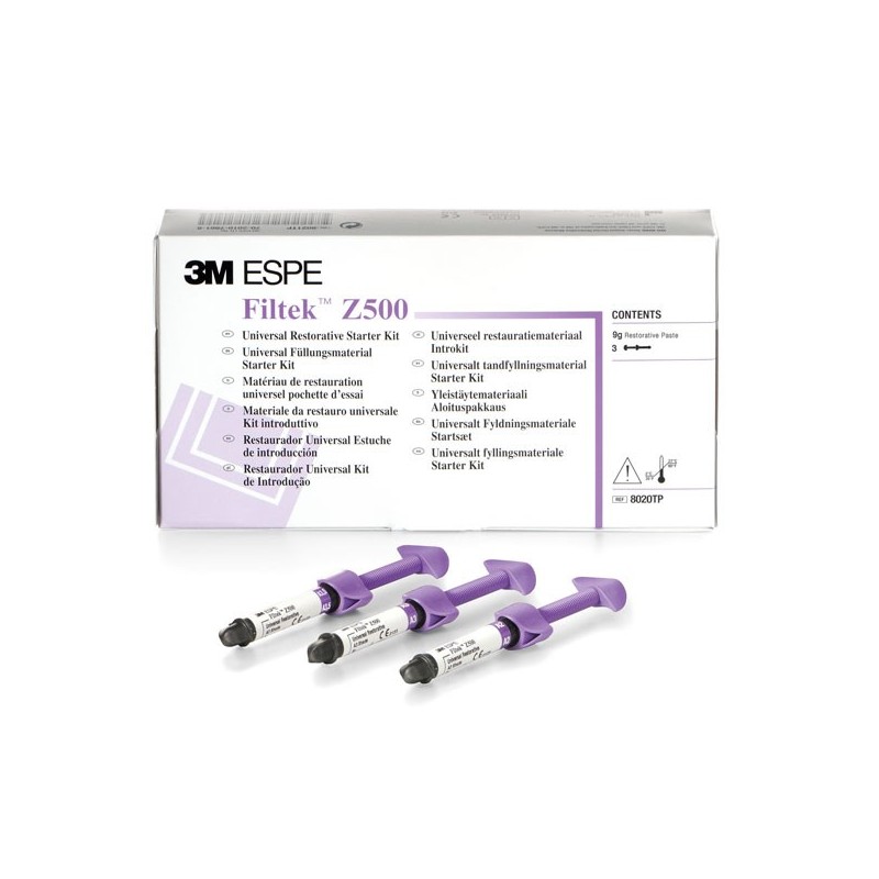 El Kit de Introducción Filtek Z500 se compone de 3 jeringas de 3gr, en las tonalidades A2, A3 y A3,5