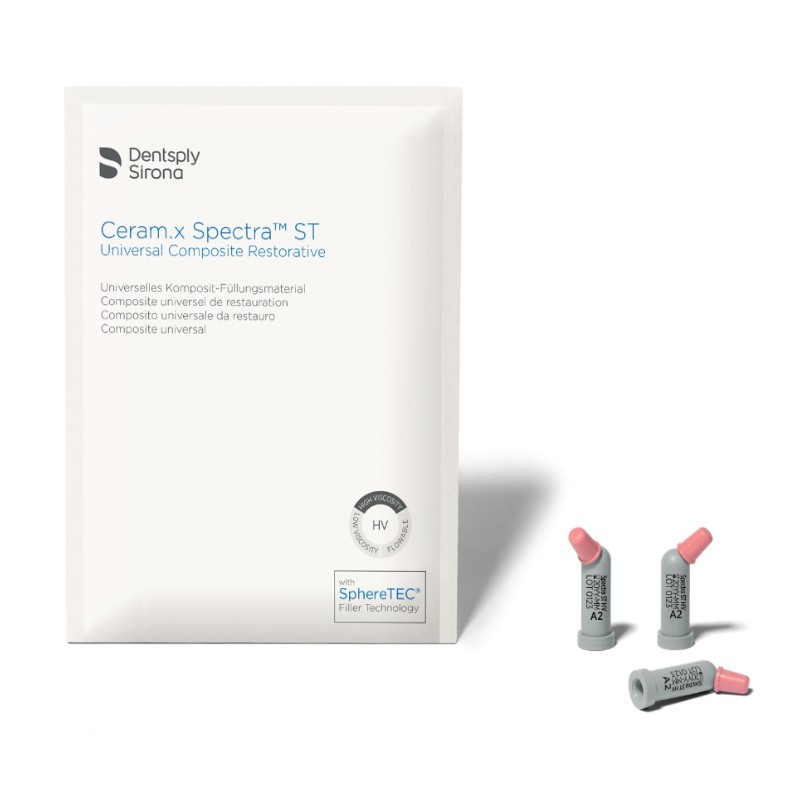El composite Ceram X Universal ahora es el nuevo Ceram X Spectra ST de Dentsply un composite universal, fotopolimerizable, basado en la nueva e innovadora tecnología de relleno SphereTec. Esta nueva tecnología contiene rellenos esféricos que proporcionan una excelentes condiciones de manejo, adaptabilidad, modelado y estética.