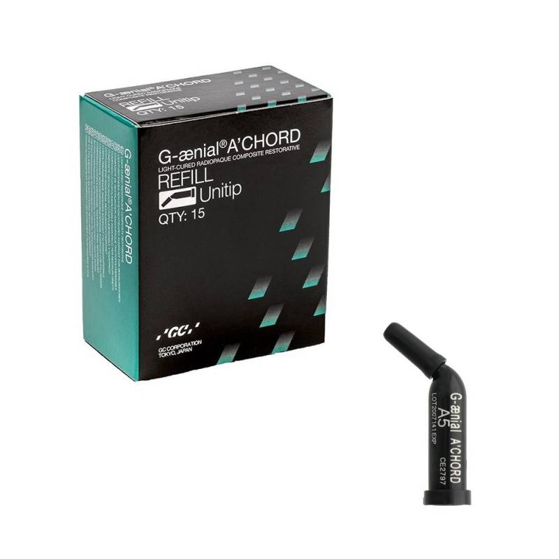 La combinación de sus revolucionarias tecnologías patentadas de GC: recubrimiento de silano de cobertura total (FSC) y CERASMART pulverizado de alto rendimiento (HPC) con los monómeros hace que G-aenial A'chord sea un composite con unas excelentes propiedades como: alta resistencia, bajo desgaste, retención de brillo, baja decoloración y excelente radiopacidad.