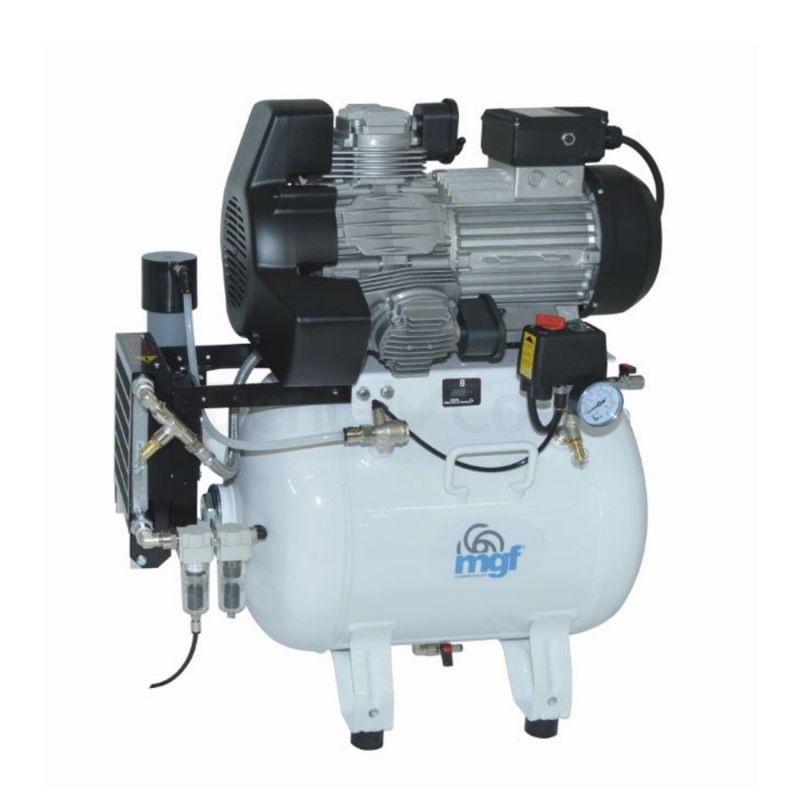 Compresor con secador MGF está indicado para el uso simultáneo de 2 dentistas. Y hasta 3 unidades dentales.