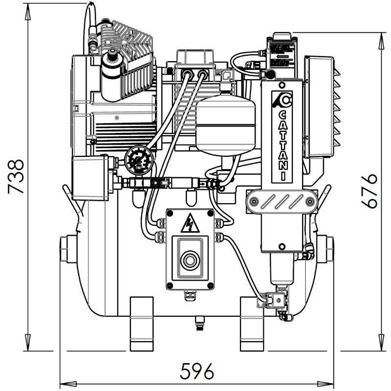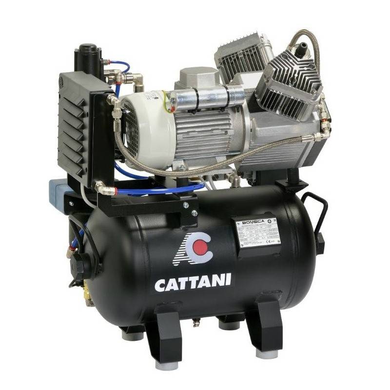 El modelo AC 200 con secador de aire de Cattani está recomendado para un uso con 2 o 3 equipos dentales. Rendimiento para 3 equipos al 100% de simultaneidad.