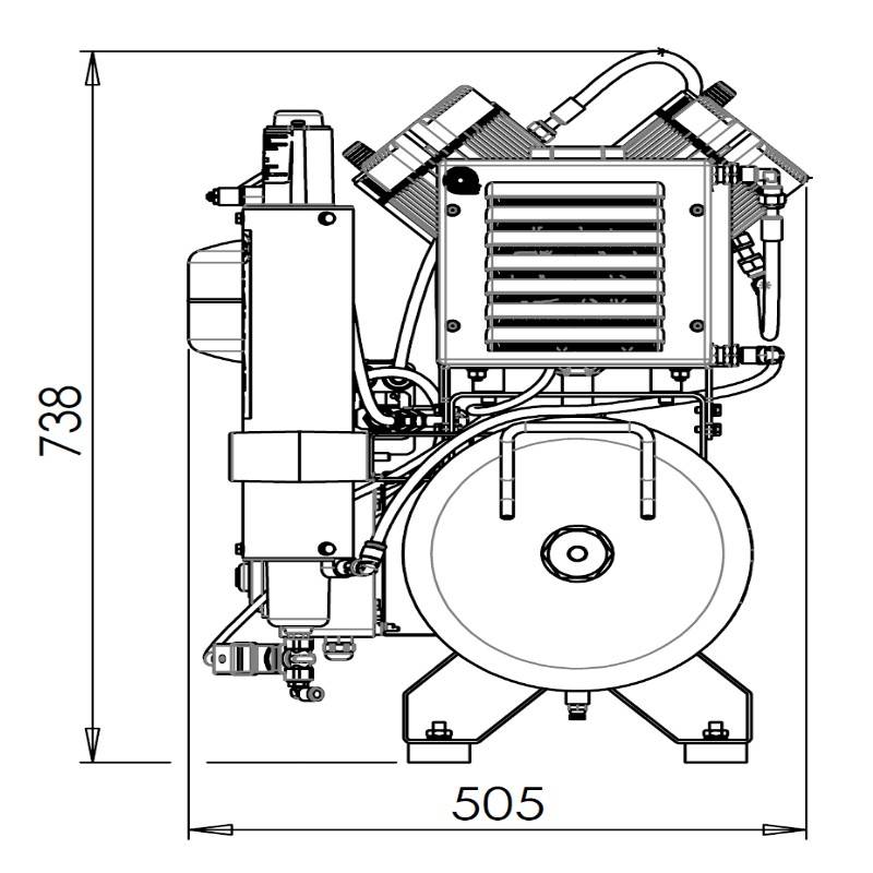 Equipado con secador de aire y con una serie de filtros, incluido uno esterilizador, que garantiza un aire seco de alta calidad y pureza.