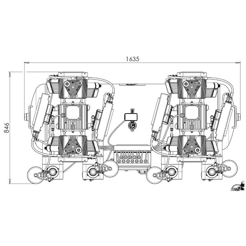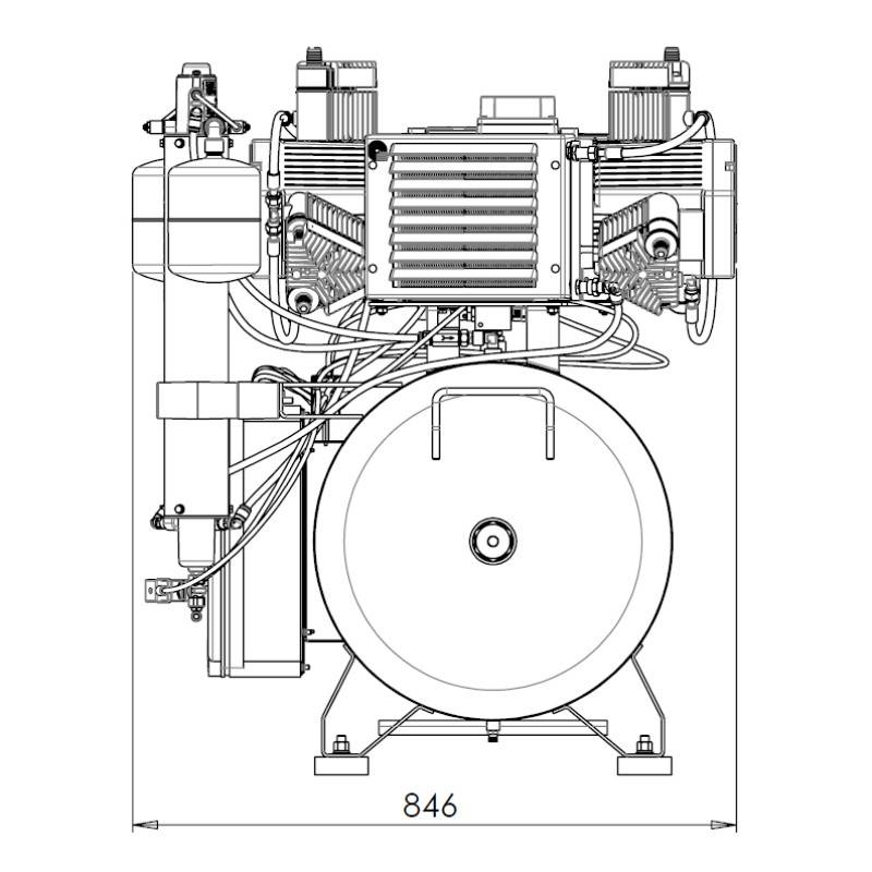 Este compresor de 2 motores trifásicos cuenta con 2 secadores de aire y una serie de filtros, incluyendo uno esterilizante, que garantiza una alta calidad y pureza del aire seco.